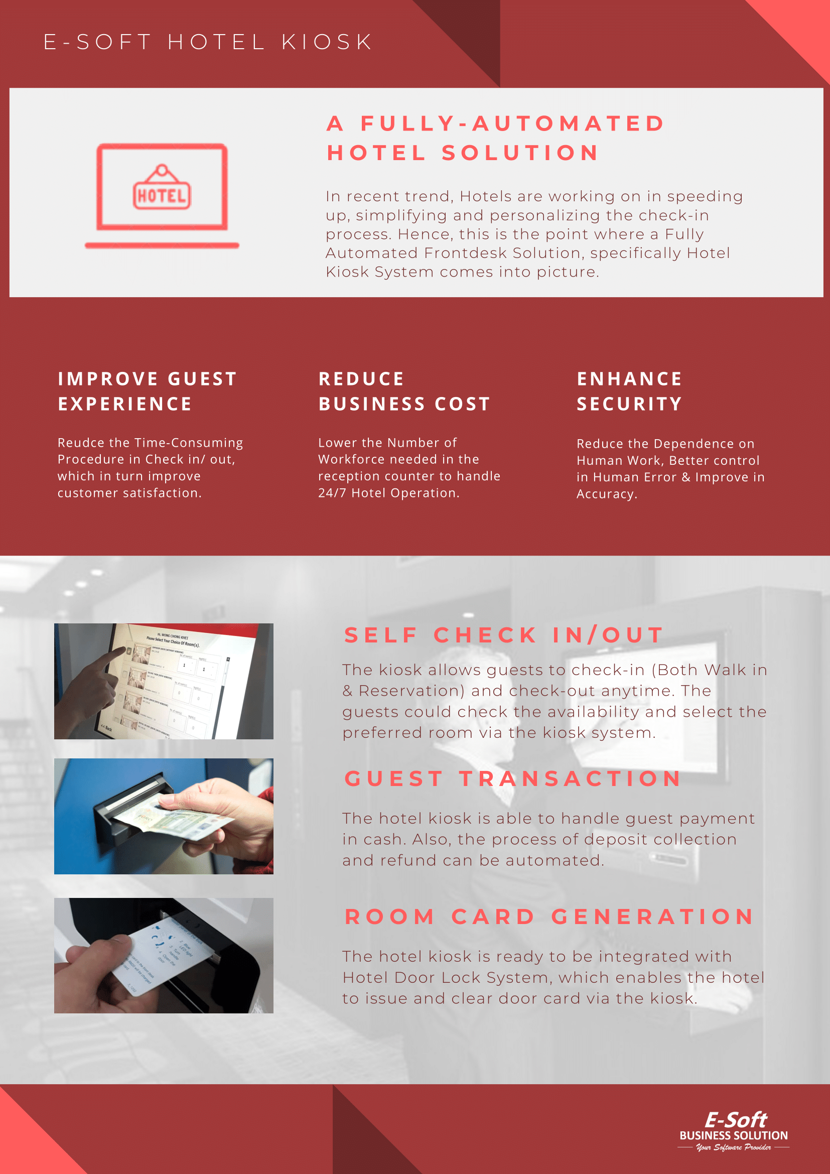 Reduce the Time-Consuming Procedure in Check in/ out, which in turn improve customer satisfaction.