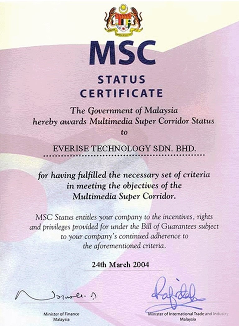 In 2004, Everise Technology Sdn. Bhd. was certified by MDC as MSC Status Company