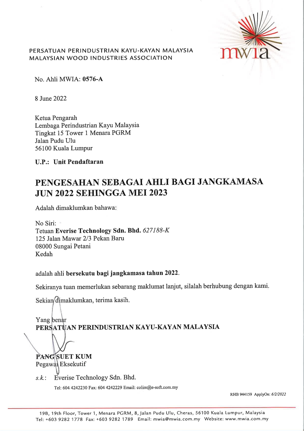 In 2022, we join as a member of Malaysian Wood Industries Association (MWIA) under Malaysia Timber Council